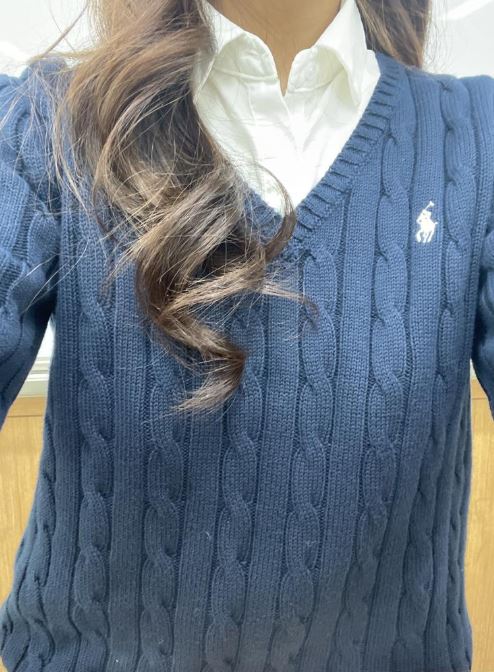 교복위에 입으려고 구매했는...폴로 랄프로렌 여성 브이넥 꽈배기 니트